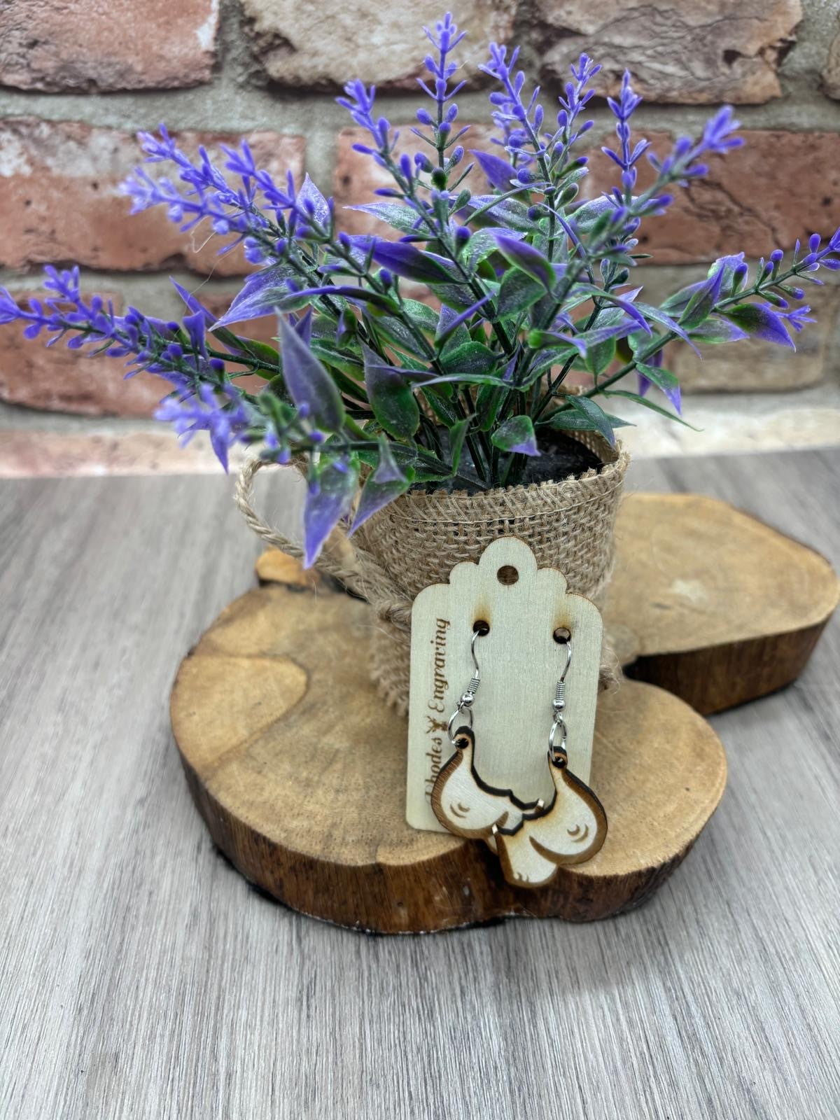 A pair of fun boobie earrings made from wood with silver hooks for the ears to add a bit of a talking point to your outfit on a night out.