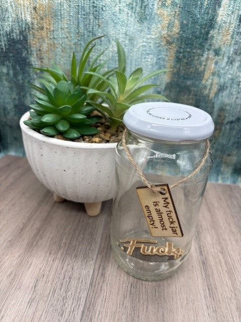 Funny item showing the fuck jar is almost empty so the holder has no more fucks to give.